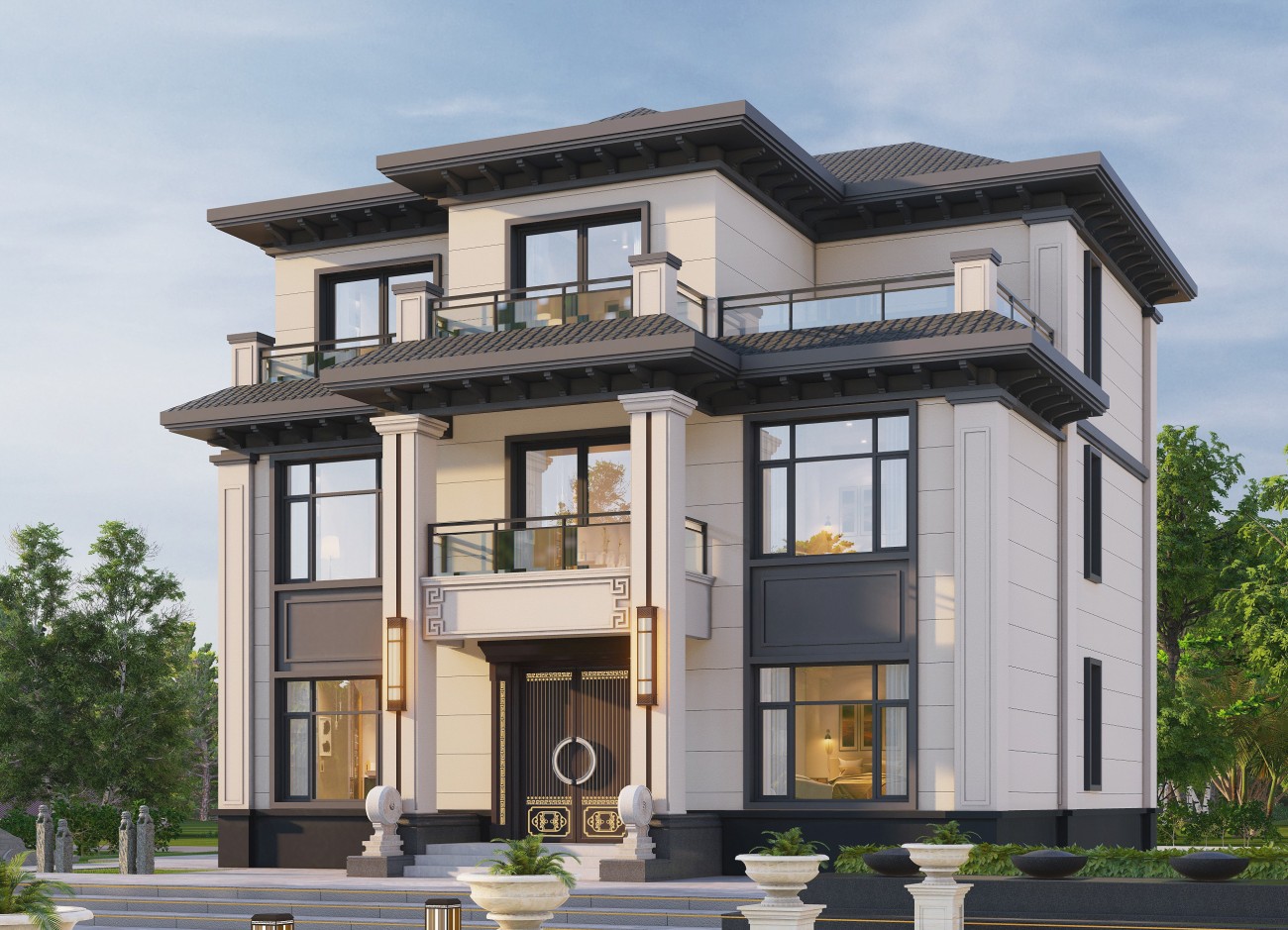 吕梁17 三层新中式(10x12米)-【易设计】