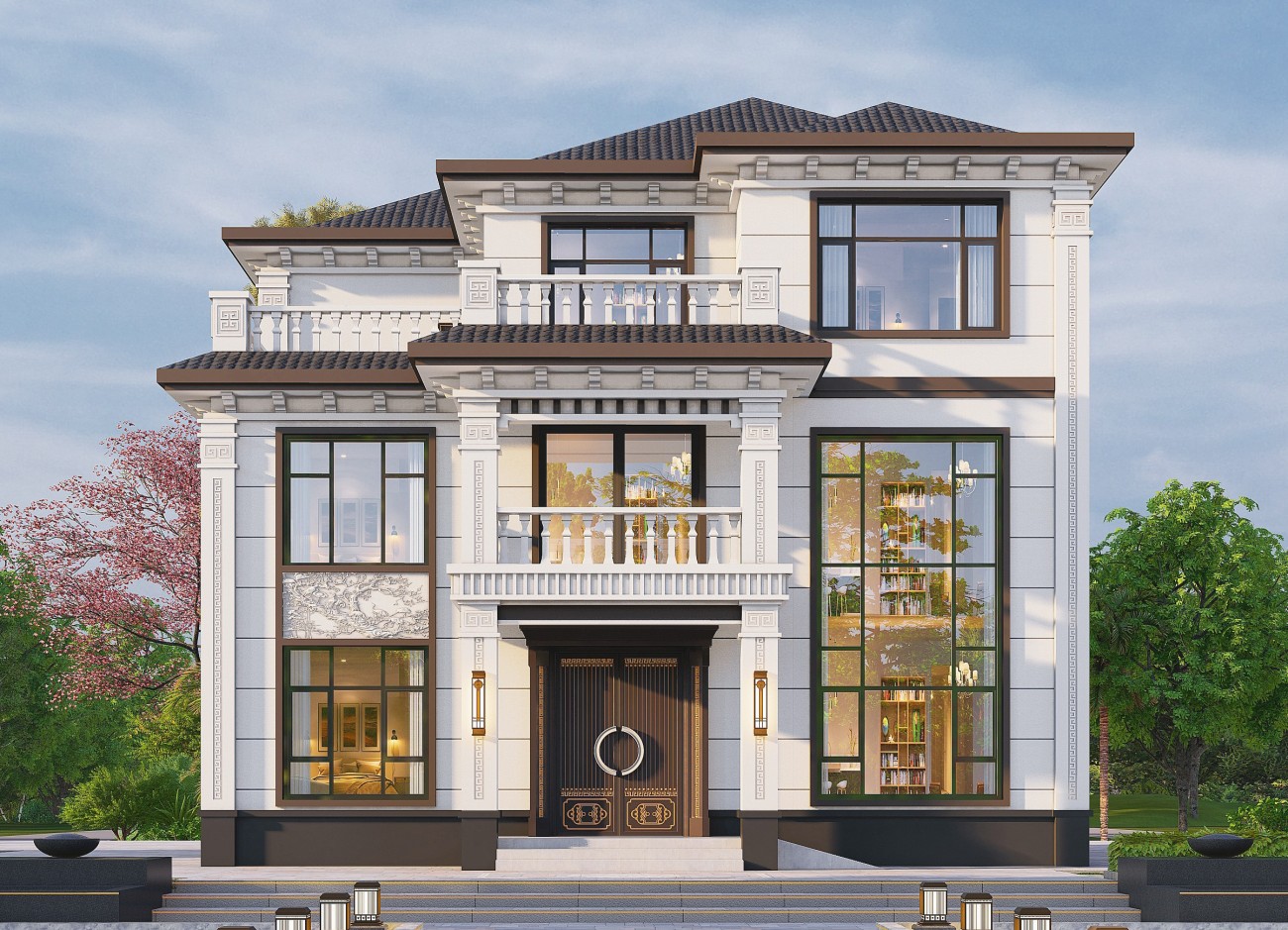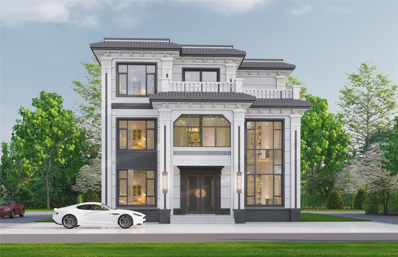 吕梁18 三层新中式(13.62x13.6米)-【易设计】